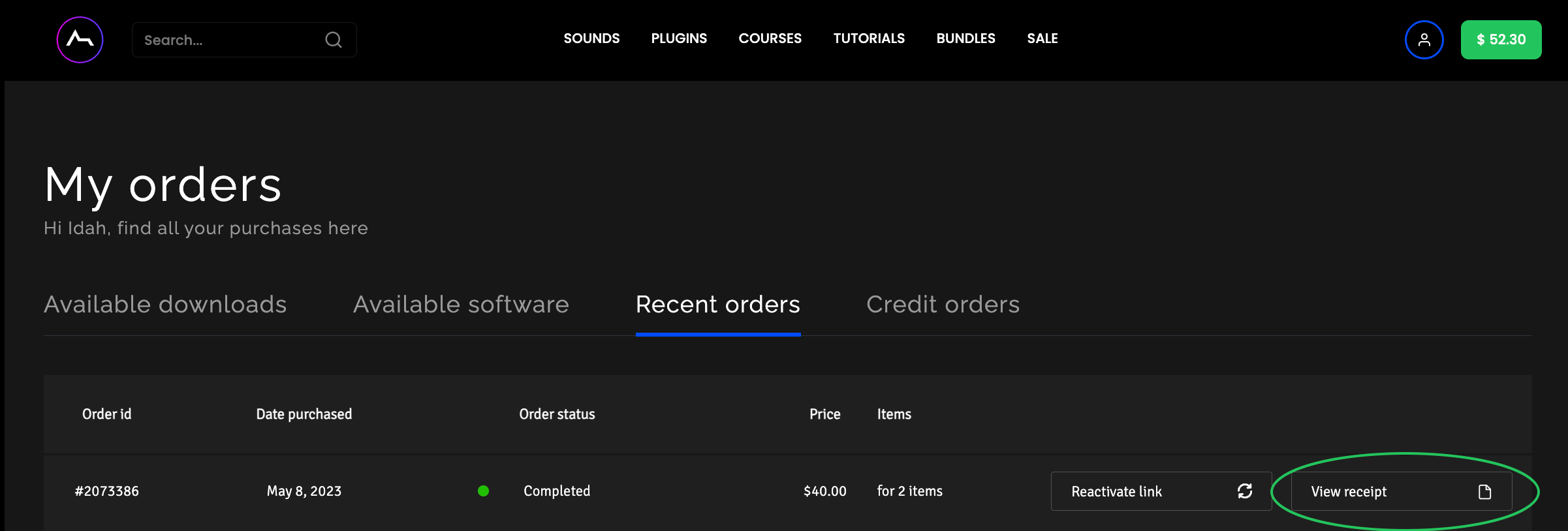 - Your refreshed links will appear on that receipt (they’re also the same as in your original email)