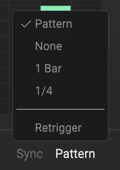 5. Sync (pattern sync) - This section allows you to select when the next pattern will be played, after the current one has completed. The dropdown settings are: